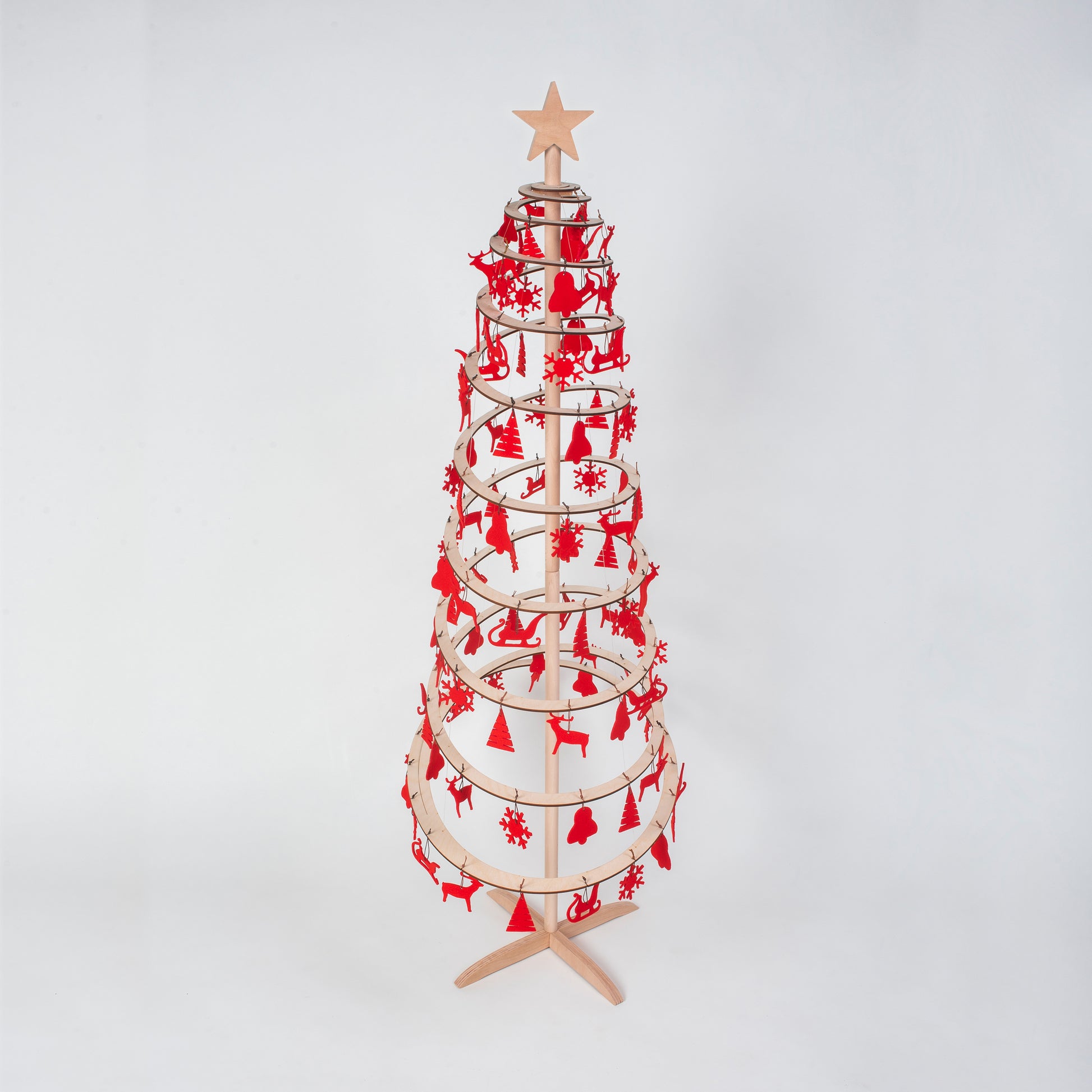 Un ensemble de décorations en feutre rouge et une étoile en bois pour sapins de Noël Spira de toutes tailles. De jolies décorations créeront une atmosphère festive parfaite à la maison. Il ne manque plus que le dîner de Noël et les personnes qui comptent le plus pour vous